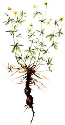 Potentilla tormentillaDie Blutwurz bekam ihren Namen von dem blutroten Saft, der beim Anschneiden der Wurzel austritt. Diese Flüssigkeit wirkt antibakteriell und enthält die Gerbstoffe, von denen die Heilwirkung der Pflanze ausgeht.